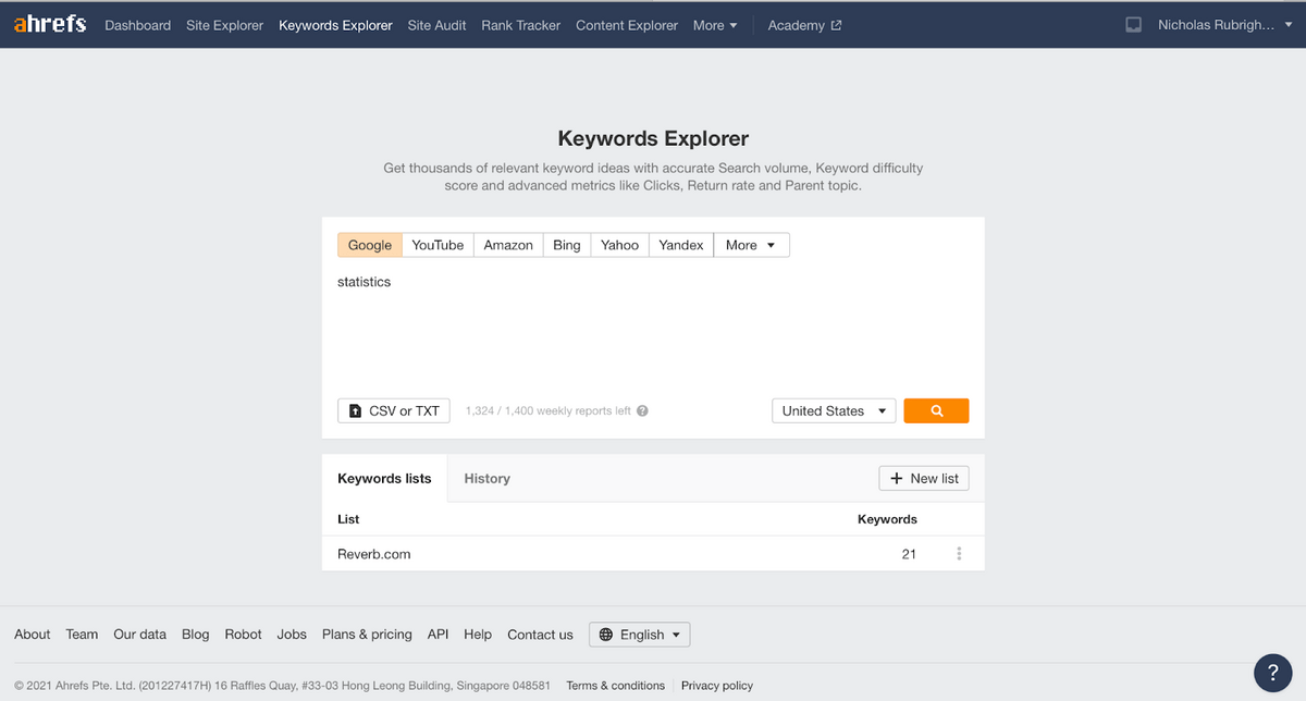 To do this, we plug one of the keywords into Ahrefs’ Keyword Explorer.