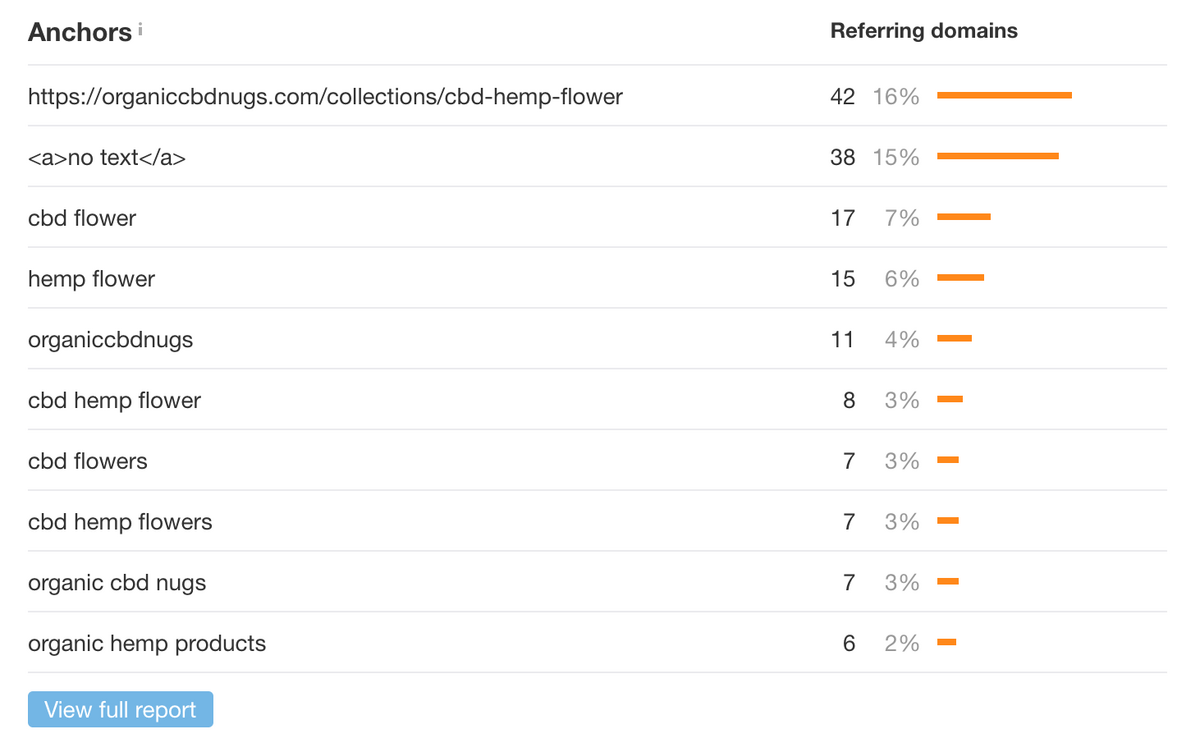 To do this, we put each competing URL into Ahrefs and scrolled to the “Anchors” section: