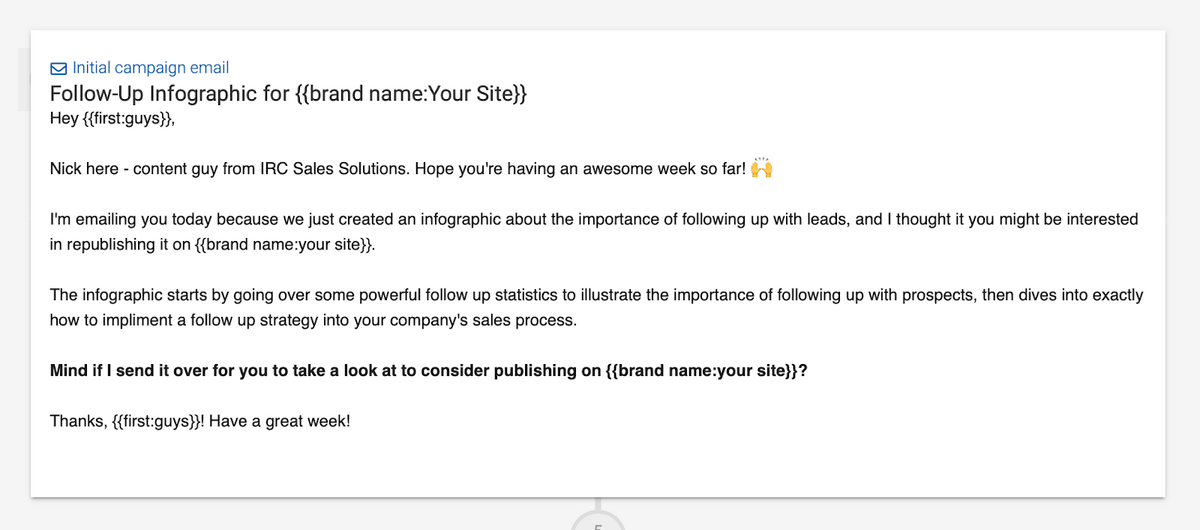 I'm emailing you today because we just created an infographic about the importance of following up with leads, and I thought that you might be interested in republishing it on {brand name:your site}.