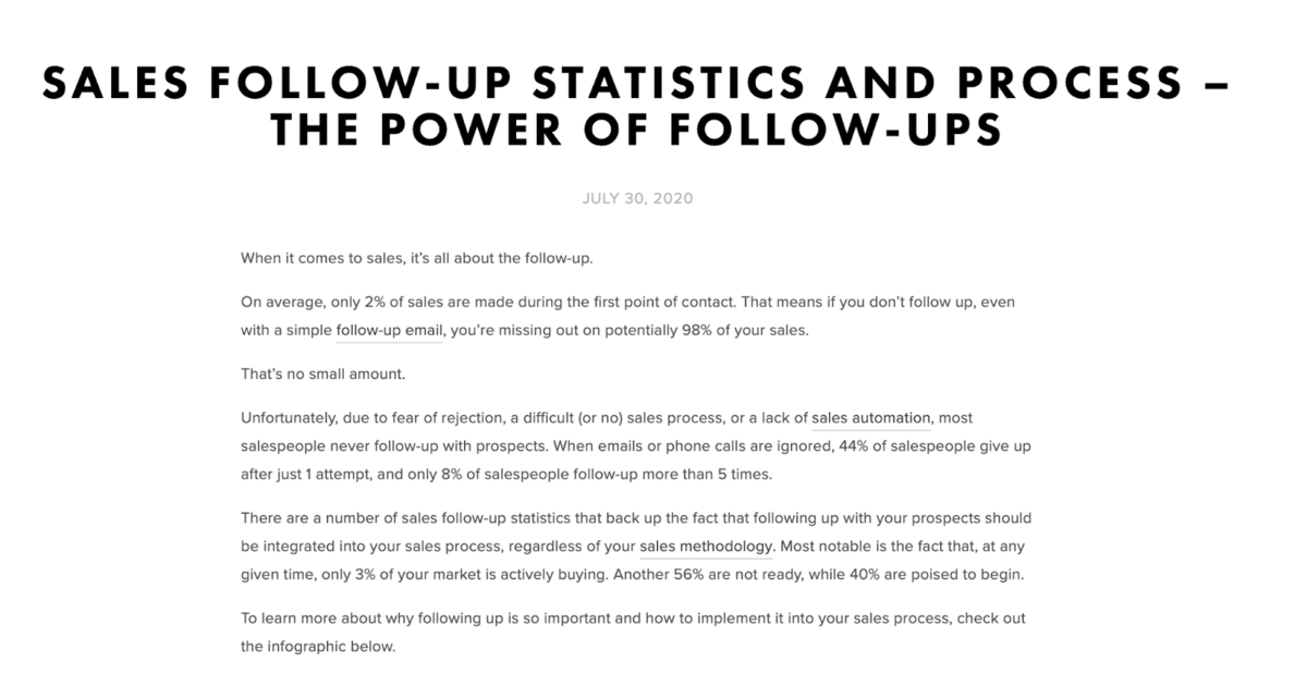 We found these stats by combing through the anchor text data of competing pages that ranked for “sales follow up statistics.”