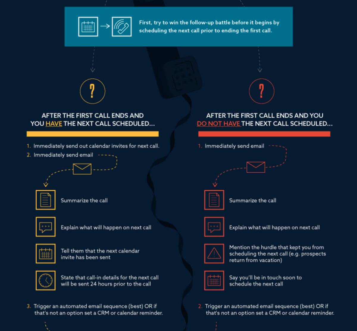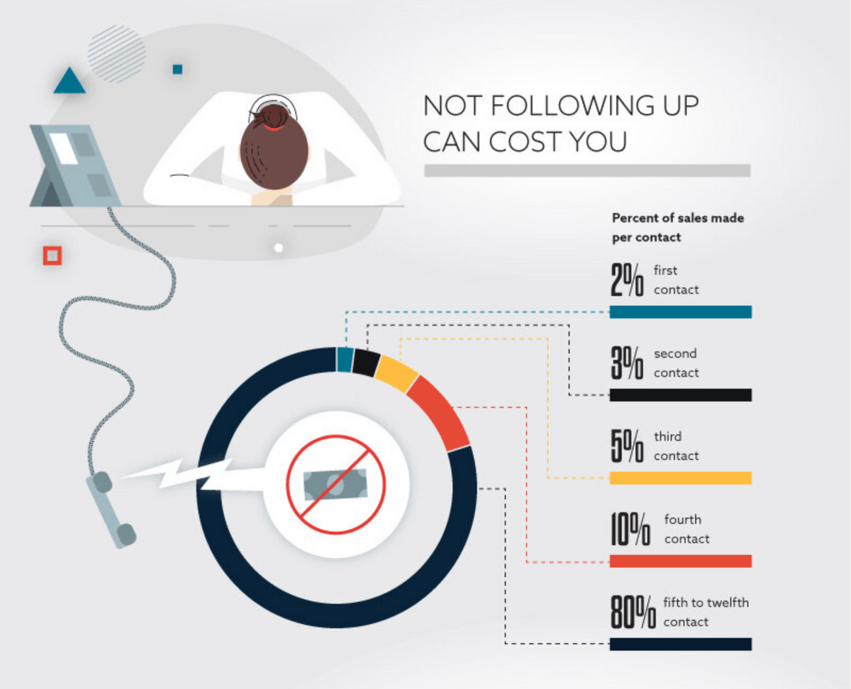 The infographic starts by going over some powerful follow-up statistics to illustrate the importance of following up with prospects, then dives into exactly how to implement a follow-up strategy into your company's sales process.